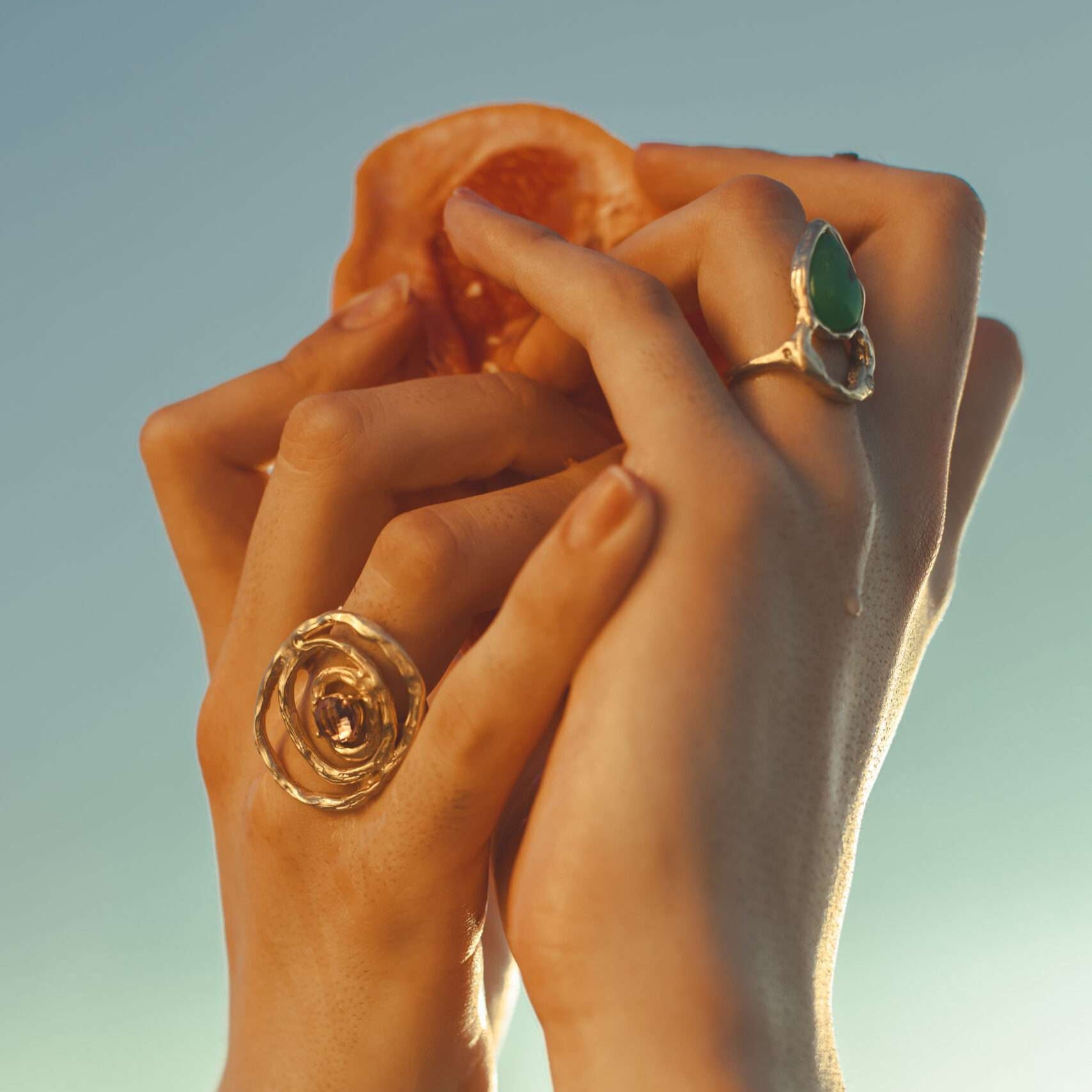 Questo anello è interamente realizzato a mano, attraverso la tecnica della cera persa e la lavorazione tradizionale al banco orafo. Ogni dettaglio è modellato e rifinito a mano, rendendo ogni pezzo irripetibile. Smaltati a mano.