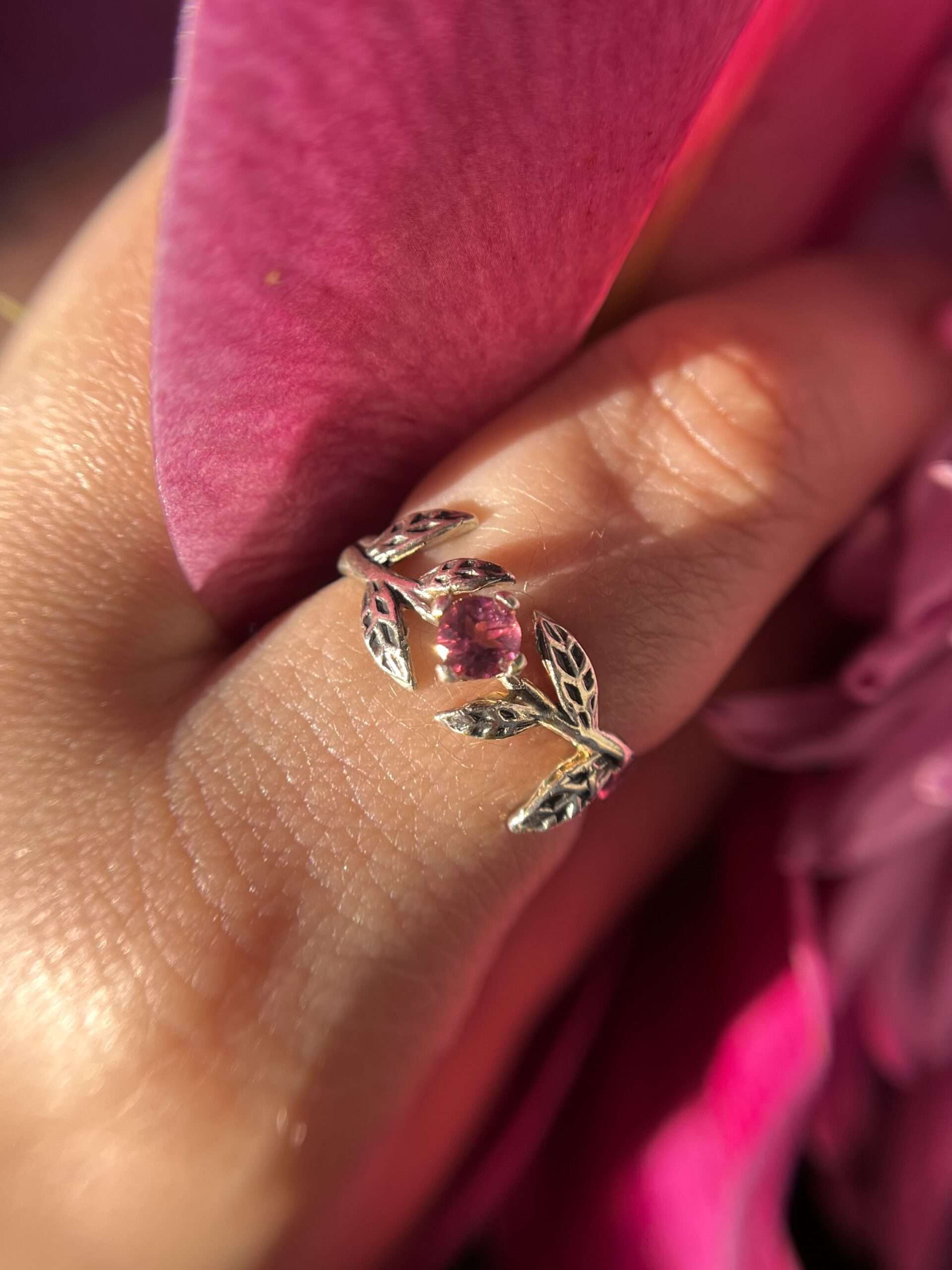 L’anello Flora è un gioiello artigianale unico, realizzato interamente a mano in argento 925 e impreziosito da una tormalina rosa naturale. Fa parte della collezione Ophelia, ispirata alla rinascita, alla trasformazione e alla bellezza dei cicli naturali.