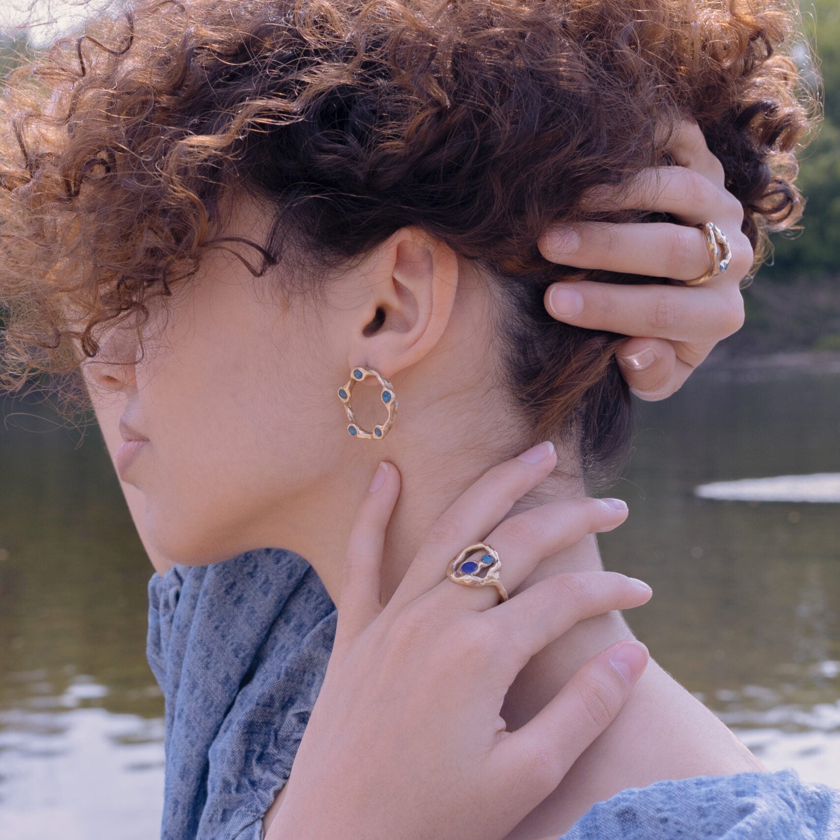 Questi orecchini sono interamente realizzati a mano, attraverso la tecnica della cera persa e la lavorazione tradizionale al banco orafo. Ogni dettaglio è modellato e rifinito a mano, rendendo ogni pezzo irripetibile. Smaltati a mano.