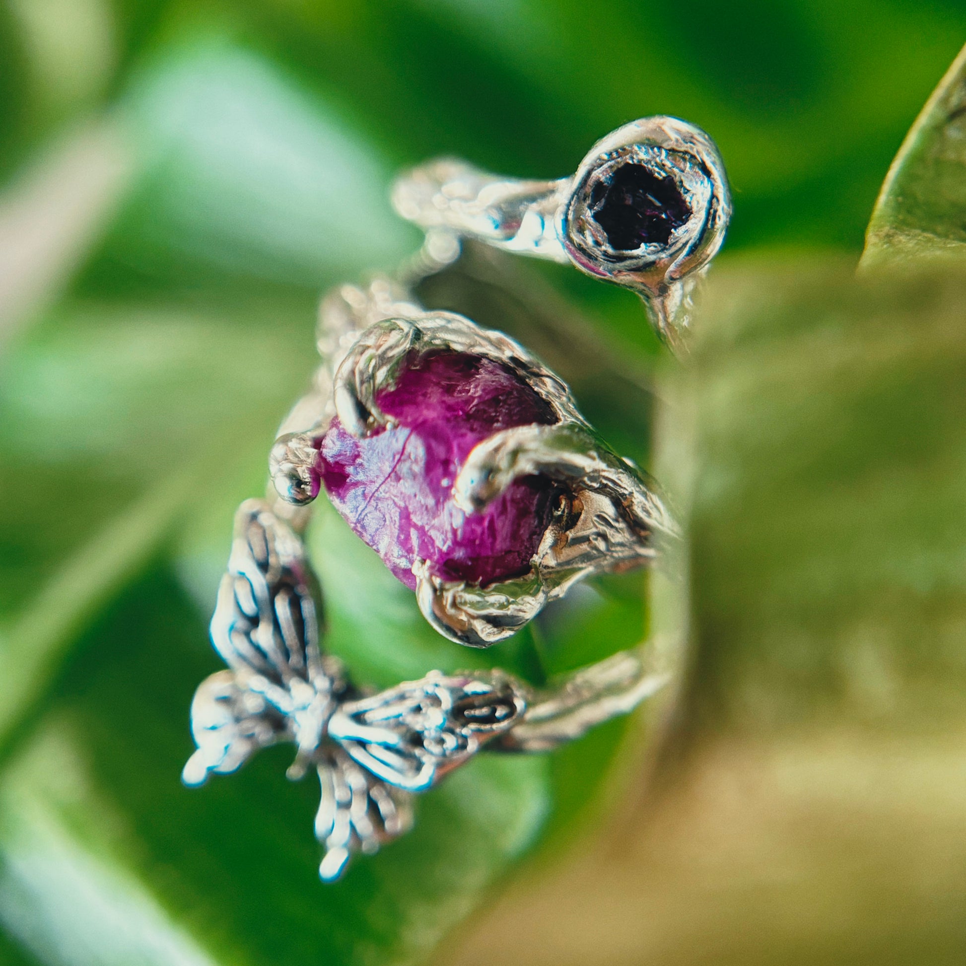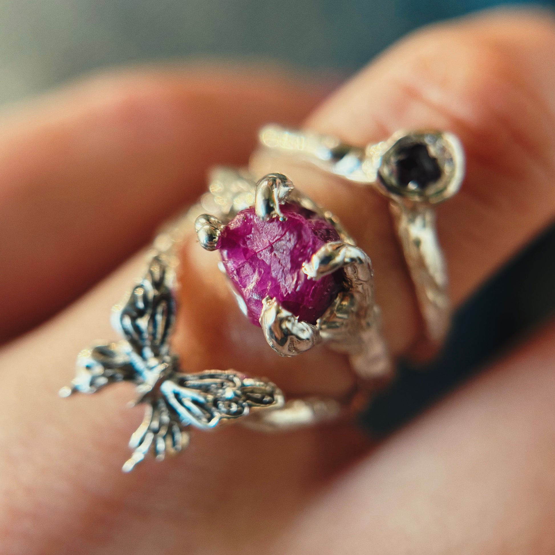 Questi anelli sono interamente realizzati a mano, in argento o brone, attraverso la tecnica della cera persa e la lavorazione tradizionale al banco orafo. Ogni dettaglio è modellato e rifinito a mano, rendendo ogni pezzo irripetibile. Pietre naturali grezze.